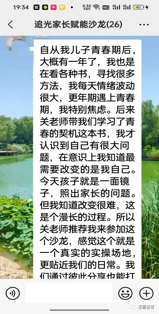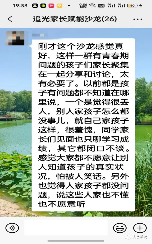这位妈妈半年来一直愁容满面,见人就哭诉。这次参加完线下活动后,又参加线上沙龙,更是鼓励其他家长不要放弃,坚持陪伴孩子,一定会好起来的!